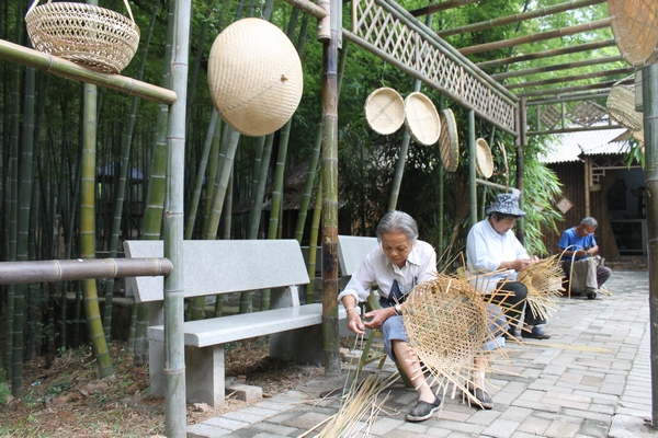 走进宝岩竹林,静静的观看老人熟练的用竹条编织竹篮,阵阵微风拂过,恬静美好。